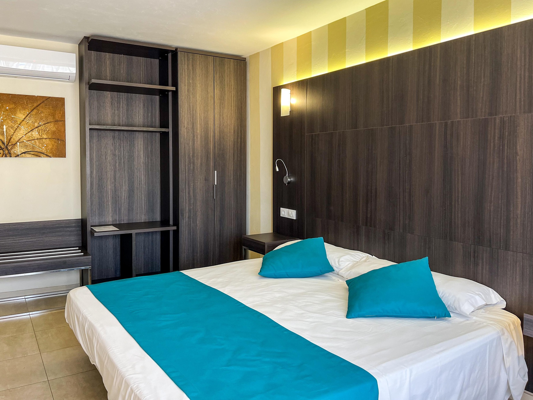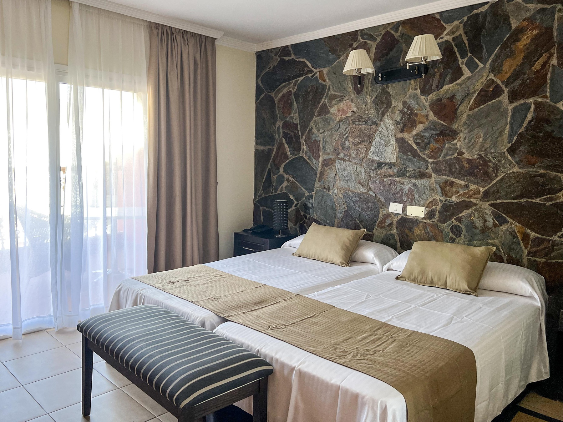 Podrá elegir entre 5 tipologías diferentes de habitaciones, todas ellas equipadas con aire acondicionado, nevera con botella de agua el día de llegada, Sat-TV, ventilador, baño con ducha, secador de pelo, espejo de aumento, amenities y un maravilloso balcón o terraza amueblado con mesas y sillas.